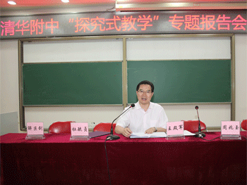 最后,王殿军校长总结发言,他希望大家以本次“探究性教学”报告会为契机,优化教学方法、教学设计,提升自身教学水平;王校长还谈了自己对“探究式教学”的理解和体会:第一,从流程上来讲,探究的问题要明确,目标要清晰,方法要多样灵活;第二,从上课的主体来讲,整个课堂应该由教师设计,教师要引导,学生要自主,探究结果要开放;第三,从目的来讲,通过探究,学生能获取知识和规律,或者通过探究问题,体现不同思维方法,启迪学生思维。
