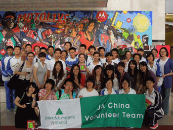JA组织(Junior Achievement,青年成就组织)是全球最大的致力于青少年职业、创业和理财教育的非营利教育机构,遍布全球100多个国家,JA与企业和教育界紧密合作,开展并推广以原则为核心、以互动性为特色的商业和经济教育,培养中国青少年的品格、创造力和领导力。摩托罗拉公司是世界财富百强企业之一,是全球芯片制造、电子通讯的领导者。
