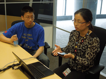 同学们根据兴趣爱好分为若干活动小组,并在相应志愿者的陪同下对公司的办公环境和各个部门工作情况进行了参观交流。参观结束后,同学们和志愿者齐聚在一层会议室大厅对参观活动进行了交流和总结,热情的摩托罗拉志愿者为学生们表演了精彩的合唱节目,此后同学们分为3组互相交流自己在不同部门的参观心得,并采取生动活泼的表演方式将本次访问的收获展示出来,第一组同学详细介绍各个部门的工作内容,第二组同学情景表演公司的一天工作情况,第三组同学以招聘会的形式介绍各个部门的职责和要求。在这短暂而富有收获的参观交流中,同学们与志愿者积极互动,踊跃参加各项活动,不仅领略了世界级高科技企业风采,也认识了企业的创新管理模式,同时在志愿者的鼓励下同学们对未来充满了信心。