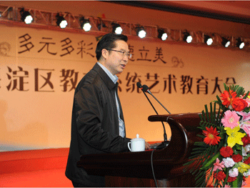 展演结束后,海淀区教委副主任尹丽君女士作了《增强文化自觉和自信,全面发展海淀艺术教育》的主题报告。