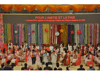 学校的特色社团“陶笛公社”的同学也参加了演出,他们演奏的由胡军老师改编的《滴答》,是一个综合了西方流行音乐、中国民乐和阿拉伯音乐的作品,此类作品在国内尚属首次,颇得外军将领们的喜爱。