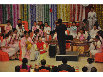 4月27日晚,bg真人娱乐金帆民乐团一行90人,由主管副校长杜毓贞带队前往位于昌平的中国人民解放军国防大学防务学院,举办了一场名为《清音传友谊 华韵唱和平—— bg真人试玩金帆民乐团慰问中国人民解放军国防大学防务学院外籍学员专场音乐会》。防务学院院长张英利将军和来自5大洲、70多个国家、160多名外军高级将领及他们的家属共200多人观赏了整场演出。