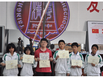 胡军老师(左3)与获奖学生合影 陈克老师 (左1)与获奖学生合影