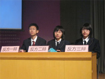 3月24日上午,北京市初中政治学科辩论赛决赛在北京师范大学附属中学举行。对阵双方是bg真人娱乐辩论队(反方)和北京师范大学附属实验中学辩论队(正方)。bg真人娱乐辩论队由一辩初1003班韩昊宇、二辩初1012班刘然、三辩初1005班徐嫄玮三名队员组成(指导教师:郎艳、罗霞)。此次决赛的主题为“个人利益与集体利益能否两全”。经过一番唇枪舌剑,bg真人娱乐辩论队员以优雅的辩论风度,高超的辩论技巧,幽默风趣的辩论语言获得场内阵阵掌声,最终获得最佳团队奖。