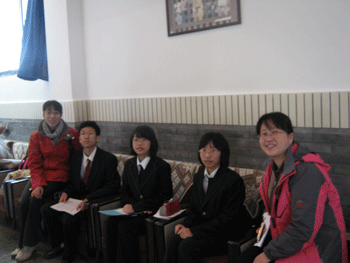 颁奖 与指导教师郎艳(左1)及市教研中心政治学科主任金利老师(右1)合影