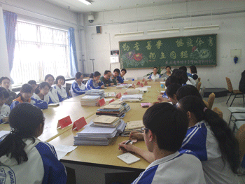 在本次会议中,十班(美术特长班)班长沈若彤针对本班“通知栏”、“图书角”、“休闲茶座”、“小组学习”等特色工作做了介绍,并总结说“我们班人少,但形成了铁打的江山”,“班里放一个空花盆,过一段它就会开出花朵”。这靠的恰是从美术班特点出发的班级建设目标和大家的热情参与。