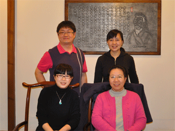 杜毓贞副校长(右前)、胡军主任(左后)与翠微小学邵贤荣副校长(左前)、德育处史艺主任合影留念-右图