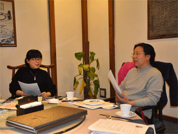 会议首先由胡军老师介绍了此次联合演出的设想并宣读了音乐会的预案。在之后的讨论中,双方校长确定了此次联合音乐会“大手拉小手 共铸民族魂”的总体目标,并就此次音乐会的时间、规模等事宜达成了共识。