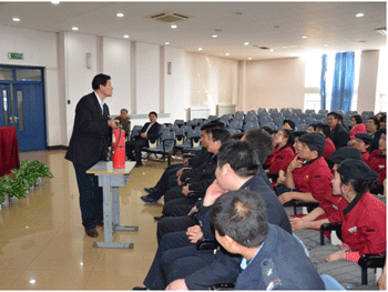 王威廉老师在讲座中,以大量的火灾案例说明了防火安全培训的重要性、必要性,并重点讲授了火灾现场的逃生与自救、初期火警的预防与扑救、灭火器的种类和使用方法等。