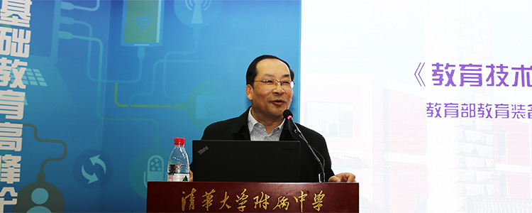 随后,教育部教育装备研究与发展中心主任曹志祥做《关于教育技术装备工作发展趋势》的主题报告,由教育技术装备的概念引入,对现今教育技术对传统教育的颠覆展开讲解,他认为,通过创造、使用、管理适当的教育技术,将其恰当地运用到教学中,才能更好地将互联网与教育相结合,理念、技术、装备改变教育;实践、发展、创新引领未来。