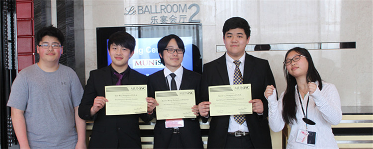 3月3~5日,bg真人娱乐国际部9~12年级的25名学生前往青岛参加“中国国际学校模拟联合国大会”(Model United Nations International Schools of China,简称MUNiSC)获得佳绩,其中,模拟人道主义委员会美国代表议员的Kevin Li同学、模拟联合国委员会巴基斯坦代表议员的Ruofan Wang同学、模拟安全理事会美国代表议员的Eric Wu同学、以及模拟裁军委员会美国代表议员Angela Zheng同学分别获得本次模拟联合国“最佳代表”称号。