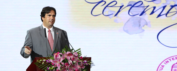 bg真人娱乐校长王殿军致辞。他先对毕业生表示了热烈的祝贺,回顾了过去一年国际部取得的成就。然后鼓励毕业生带着“自强不息,厚德载物”的清华校训,成为“既有中国文化底蕴,又有国际视野的杰出人才”,并担负起全球社会领导的重任。最后,王殿军校长借余光中先生的一首《写给未来的你》表达了对本届毕业生的期望,希望他们“今后常回家看看”。