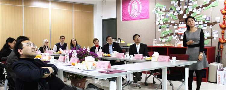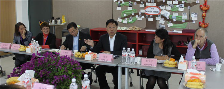 李文平副校长(右1)介绍学校概况
