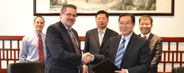 bg真人试玩王殿军校长(右)和美国Carthage大学教务长Dr.Garcia(左)签约