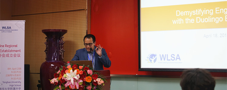 会议下半程,约瑟夫•埃德尔萨克先生为大家介绍了多邻国英语测试(DET)。这一测试为今后中学语言类水平测试提供了一条新的思路。贾博先生则为大家介绍了WLSA自主研发的中西融合素质教育STEAM课程,引起了到场嘉宾的热烈讨论。