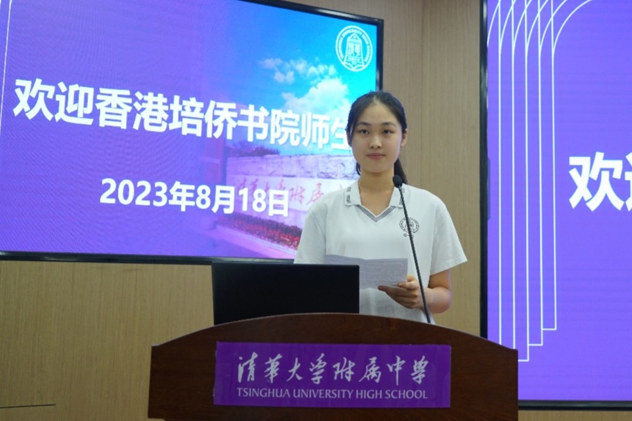 bg真人娱乐潘艺雯同学作为学生代表发言。她代表附中师生向培侨书院的老师和同学们表达了最热烈和最诚挚的欢迎,希望在接下来的交流期间,能够向香港同学展示附中“自强不息、厚德载物”的文化特色和青春飞扬、神采激昂的学生风采。
