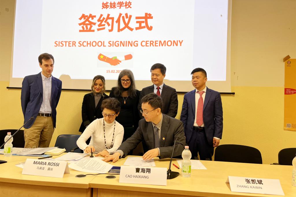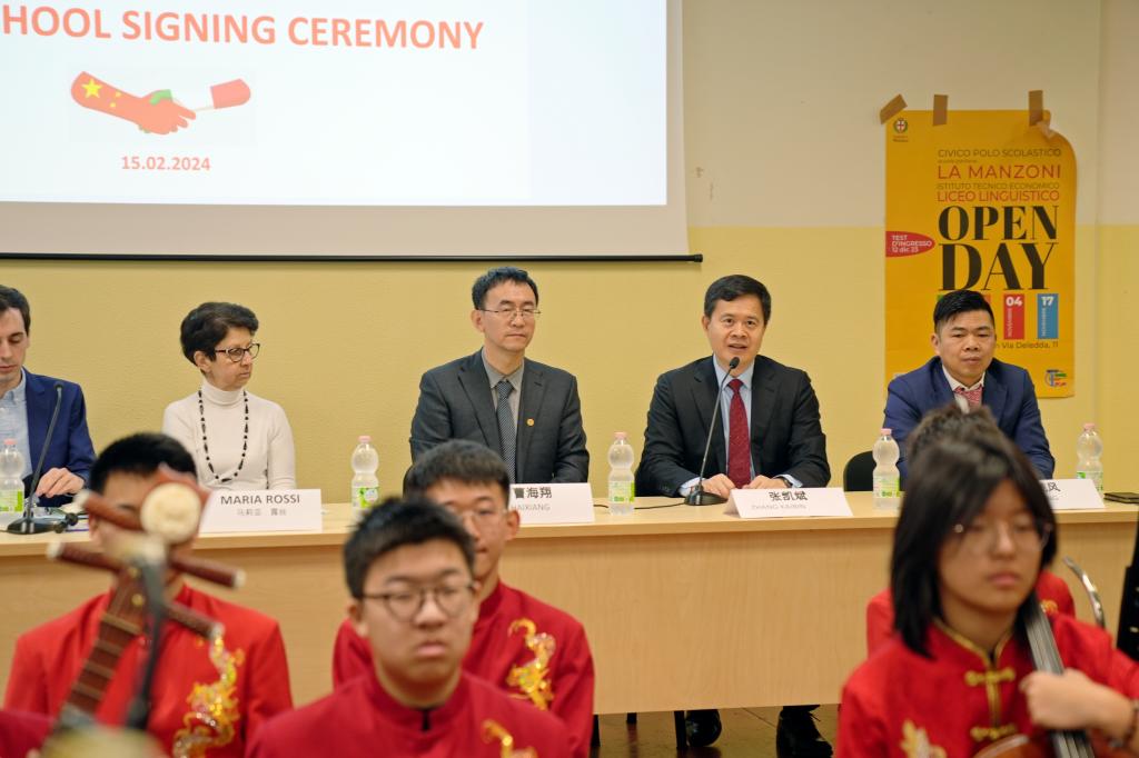 意大利当地时间2月15日上午,bg真人试玩与A.Manzoni市立外语中学签约仪式顺利举行。出席签约仪式的中方代表有驻米兰总领馆副总领事张凯斌、bg真人试玩党委书记曹海翔、米兰浙江商会会长林茂风,意方代表有米兰教育局局长Lucia Scopelliti、A.Manzoni外语中学校长Maria Bernadette Rossi。参加签约仪式的还有bg真人试玩金帆民乐团学生和A.Manzoni市立外语中学学习中文的学生。