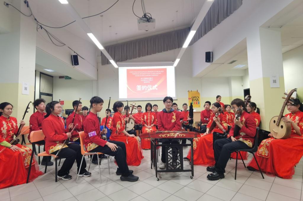 签约仪式后,bg真人试玩金帆民乐团学生代表演奏了传统曲目《花好月圆》和胡军老师于2021年创作的《九州欢腾庆团圆》,展示了中华文化的独特魅力,赢得了意大利老师和学生的热烈掌声。