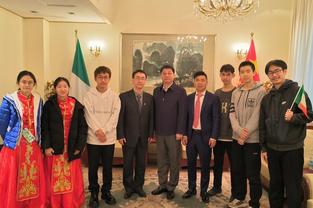 签约仪式后,曹海翔书记与学生代表应邀前往中国驻米兰领事馆,总领事刘侃接见bg真人试玩金帆民乐团师生并指出,领事馆对此次签约仪式高度重视,此举将增进两国学生彼此了解,促进中意学生教育交流,深化两国传统友谊。