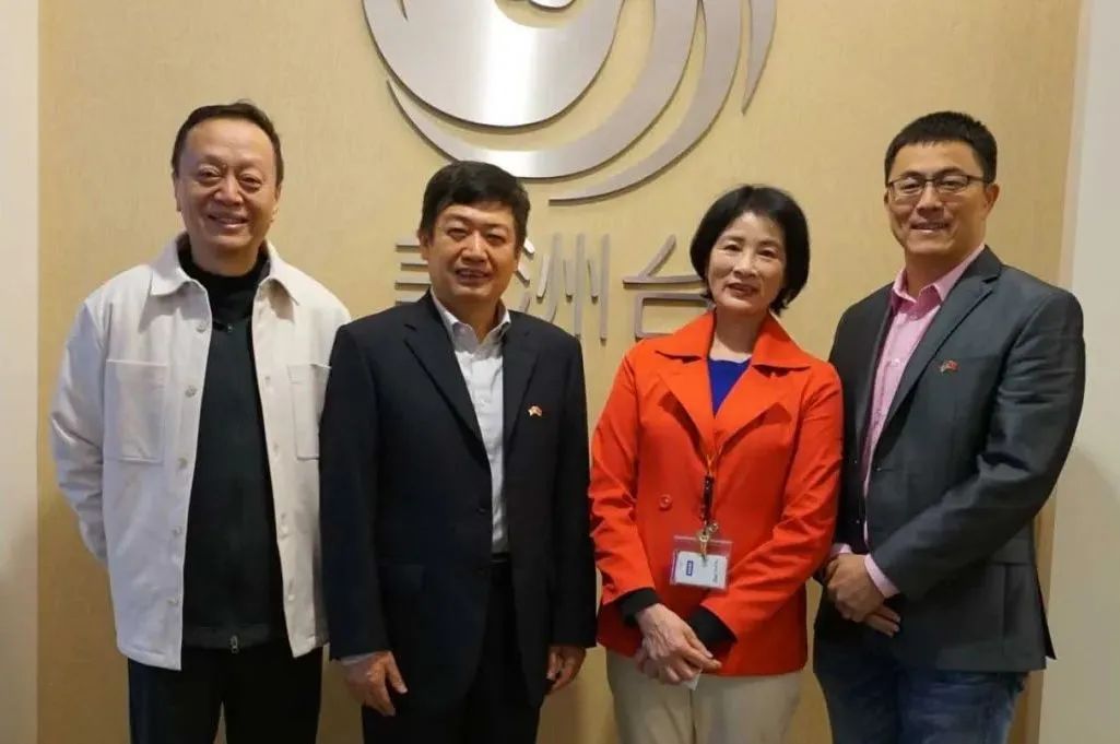 左起:美中电商贸易协会创会会长谢建华、bg真人娱乐副校长白雪峰、凤凰卫视美洲台台长曾世平、美国风雷国际集团总裁冯烨