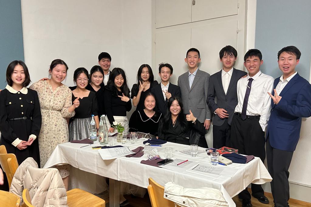 经过十个小时的飞行,跨越八千余公里,bg真人娱乐的老师与同学们终于在德国时间1月25日晚12点抵达了萨勒姆王宫中学。在这里,十四名附中学生跟随着他们各自的伙伴同吃同学。萨勒姆王宫中学的老师为学生们准备了如德语名著阅读课、数学课、以“Bridging the gap”为主题的英语课、历史课、涉及洋流、冰雪反照率反馈效应的地理课、政治课、哲学课、物理及化学实验课、生物课、以及专为我们量身定做的德语入门课等丰富又精彩的课程,极大的激发了同学们探索的求知欲,让他们遨游于知识的海洋。傍晚时分,萨勒姆王宫中学为附中学子举办了欢迎晚宴,附中学生代表王楚源与德国学生代表分别致辞。随后,赵思齐同学演奏小提琴《巴赫第三组曲》片段与中国乐曲《渔舟唱晚》。附中同学们身着礼服,与德国伙伴们欢聚一堂,愉快的交流各自国家的文化习俗、名胜古迹与传统美食。