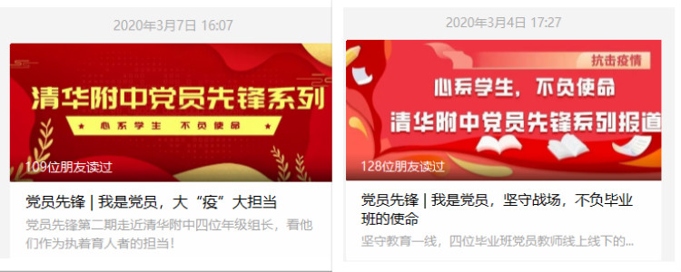 附中党员教职工在疫情面前当先锋做表率,以高度的责任感和使命感,全身心投入到“停课不停学”和校园疫情防控之中。为更好地推动先锋、榜样力量,附中党委加大宣传,深入挖掘党员示范典型,讲好身边党员故事,展现疫情期间教育者的“战疫”事迹。