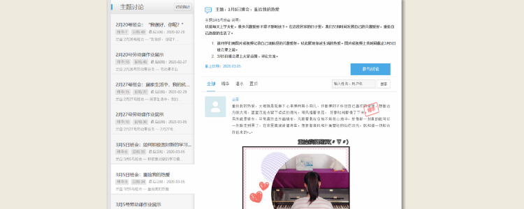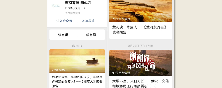 2月17日线上自主学习后,班级申请了公众号,利用这个平台展示成果,交流思想。读书报告定期推送,展示个人的读书成果;主题班会每周推送,将小组组织的班会内容固化为成果;主题活动的集中推送,如组织同学从审美和文化两方面赏析武汉市旅游局推出的系列感恩送行海报,既是特殊的语文作业,也是德育教育的组成部分。公众号平台虽小,历久生光,已成为班级德育的新阵地!