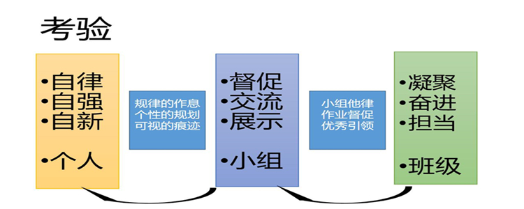 同时,以学生自由组合的研学小组作为学习共同体,让个人自律与小组共进相结合。通过提前给组长的培训,引导组长和组员们一起,在个人计划的基础上,进行小组规划,通过每日组会,交流学习节奏、学习方法,以便更好地提升学习效果。