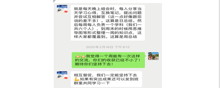 学生的学业成绩发展是停课不停学期间班主任工作的重要方面,我始终坚持以“自主”作为班级学风建设的导向。首先通过班会,做以整体倡导,引导学生理解自律的意义,唤醒自强之心。