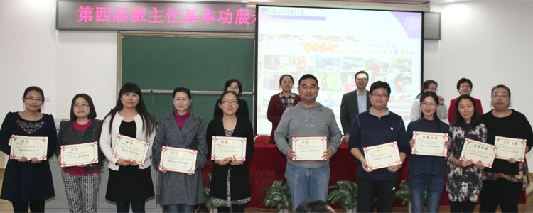杜毓贞副校长首先宣布第四届班主任基本功展示活动获奖名单,并向获奖的各位班主任和青年教师表示祝贺。本届比赛共有33位班主任获得展示特色风采奖,25位青年教师获得读书奖;接着由校领导为获奖者颁奖。