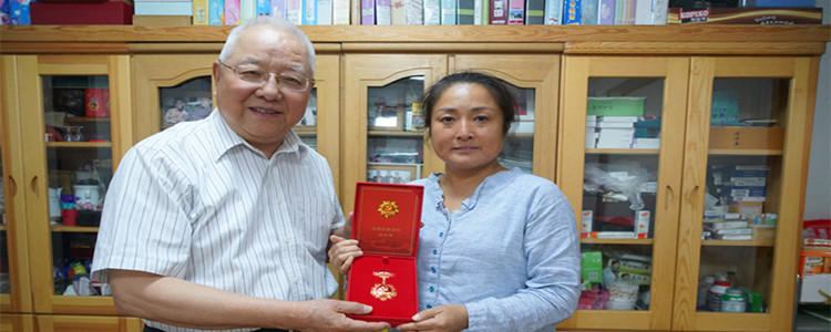 党委书记方妍为郭建生老师(左)颁发纪念章