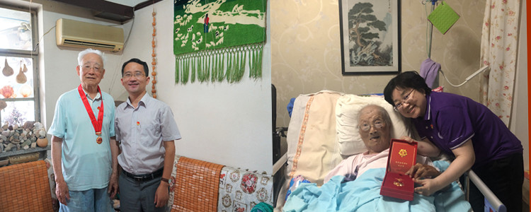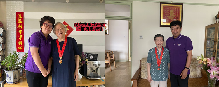 bg真人娱乐共有27名老党员荣获纪念章。“七一”前夕,附中党委委员和党员领导干部分别上门慰问不能到现场参加仪式的老党员,并将纪念章颁发给老党员。领到纪念章后老党员们激动不已,当场佩戴纪念章留影。93岁高龄的离退休干部张秀真老师认真地阅读纪念章的寓意说明。还有几位卧床的老同志也将纪念章紧紧得握在手中,仔细端详。卧床多年的老党员孙振民老师在收到纪念章后,特别让家属记下心声:“作为一名老党员,我感觉非常光荣和自豪,我虽然年迈身残,但共产党人的初心不改。感谢党多年的培养,感谢国家关照,让我过上老有所养,老有所乐的幸福生活。衷心祝愿我们的党和国家更加繁荣昌盛,国泰民安。”