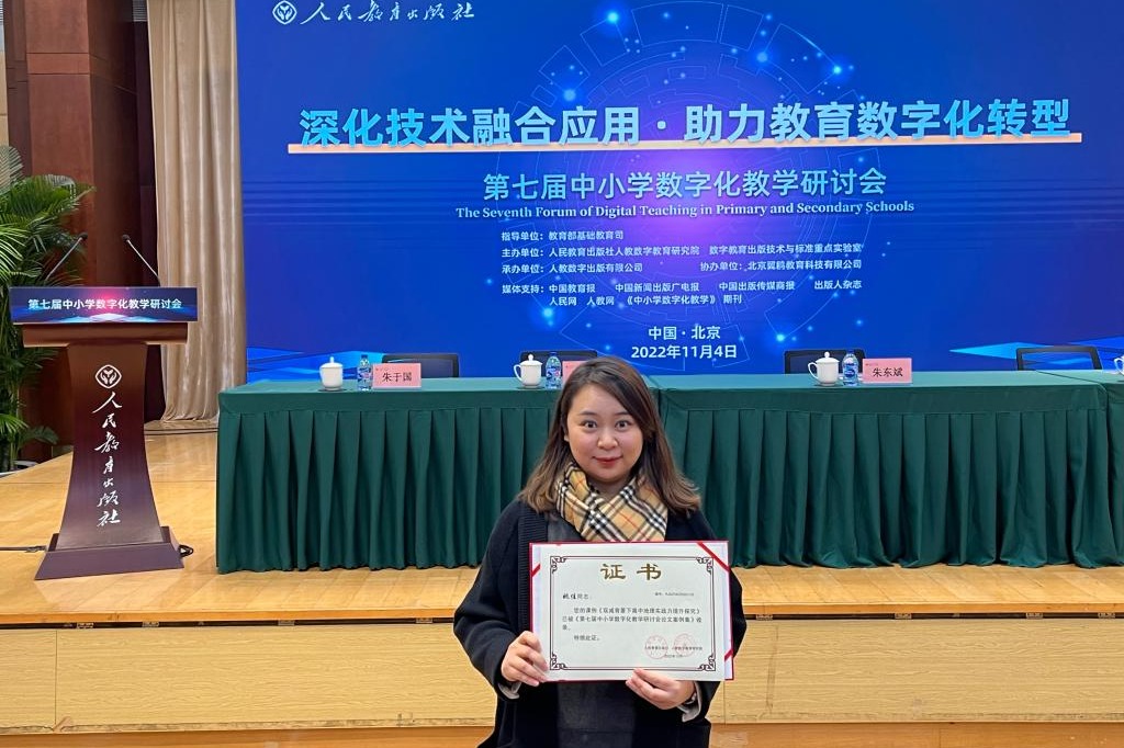 精彩的课堂需要扎实的专业知识作为支撑。为此,姚佳在苦练教学技能的同时不放松对学科专业的学习和研究。2023年,她主持两项区级、校级课题,三年内累计参加市级、区级课题共8项;在国家级期刊《地理与地理信息科学》《中小学数字化教学》发表多篇论文;完成全国中小学教师继续教育网《人类面临的环境问题——水资源短缺》《地理信息技术的应用》的培训任务;她参与《高中地理图文详解地图册》《bg真人试玩给孩子的通识课》等教材图书的编写出版;多项论文研究成果和教学成果获市级、区级评比一等奖。