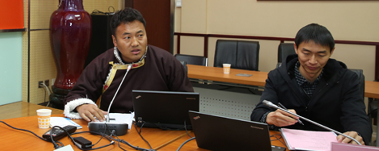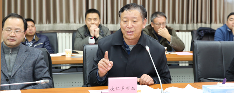 西藏教育厅副厅长次仁多布杰(前右)讲话