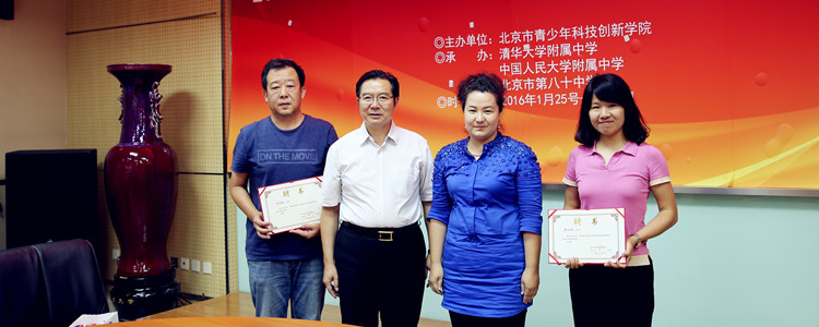 王殿军校长(左2)向指导教师(左1王太华老师,右1周小玲老师,右2努日曼古·买买提老师)颁发聘书