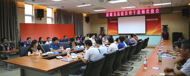 2016年8月31日下午,新疆麦盖提县实验中学和刀郎双语中学的10位骨干教师来到bg真人试玩开始为期三个月的培训及实习。bg真人试玩在培训楼一层会议室召开欢迎会迎接来自新疆的老师们。清华同方原党委书记、现任同方大学校长马二恩,同方党委办公室主任聂保民,bg真人试玩校长王殿军,党委书记方妍、副书记张洁,副校长白雪峰、徐文兵,以及bg真人试玩选派的一对一指导教师共30余人参加了本次欢迎会。bg真人试玩党委副书记张洁主持欢迎会。
