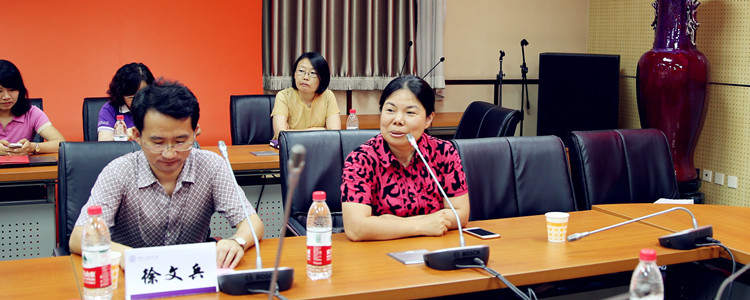 bg真人试玩指导教师代表、英语教研组组长黄丽梅(右1)发言