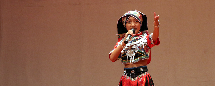 联欢会上 “东兴英才培养计划”学员陈晓薇演唱《美丽的侗乡》