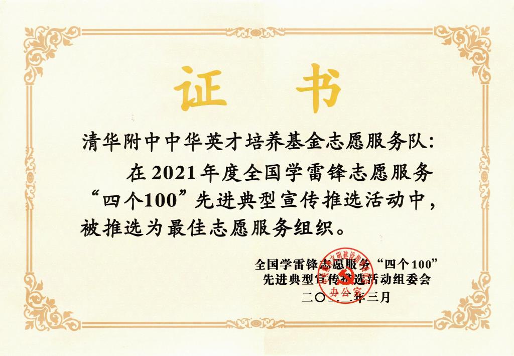bg真人试玩中华英才培养基金志愿服务队在2021年宣传推选全国学雷锋志愿服务“四个100”先进典型活动中被评为“全国最佳志愿服务组织”。2022年4月,bg真人试玩中华英才培养基金志愿服务队更名为bg真人试玩成志英才培养基金志愿服务队。
