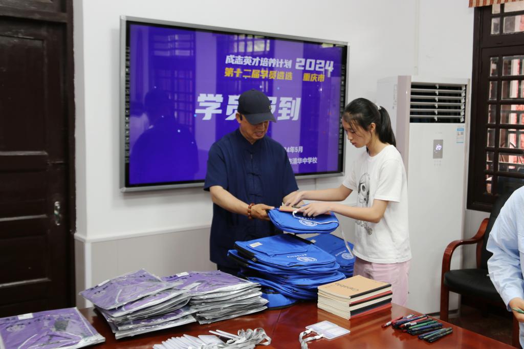 10日下午,巫溪县和垫江县的30位学员在2位领队教师的带领下来到重庆清华中学,怀着新奇与期待进行报到,了解活动注意事项,领取活动使用的服装、书包、文具、证件等资料。