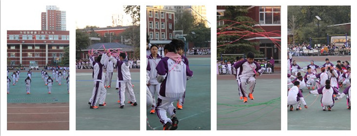 接下来就是期待已久的绳操展演,同学们随着音乐有节奏地挥动起了手中的跳绳。这个节目曾在2018年北京市中小学生运动会开幕式中进行展演,参与展示的同学们,用自己饱满的精神,精湛的技艺,抢眼的动作,赢得了全场师生的热烈掌声。
