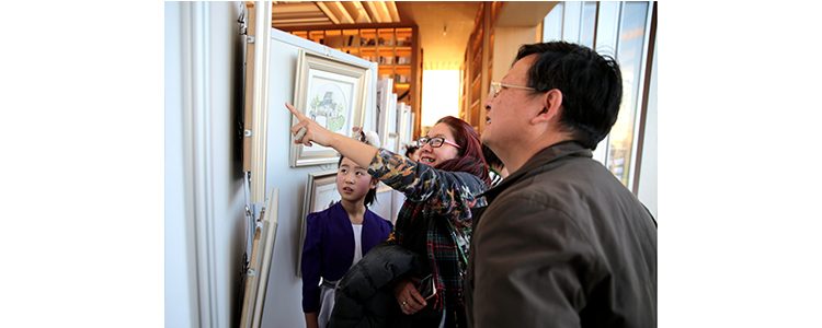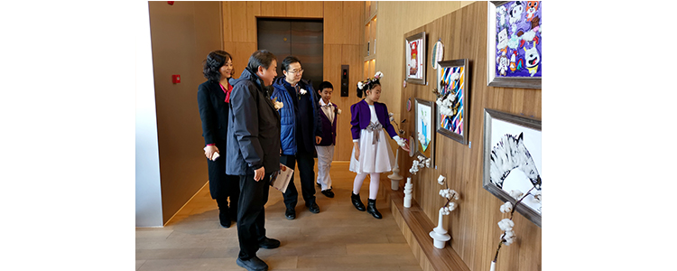 小讲解员为到场领导嘉宾介绍棉田创意绘画作品