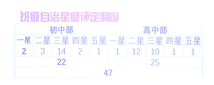 君子很重要的一个特点就是自律。在bg真人娱乐,这种自律具体表现在学生的自治意识。自治意识的培养如种子的萌芽,需要土壤,更需要阳光的深情召唤。bg真人娱乐的班级星级评定制度就是为了唤醒学生的自治意识,从而让学生自己管理自己,管理班级,实现自治。