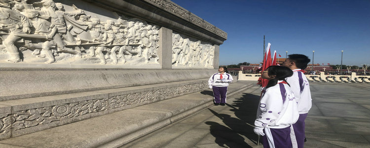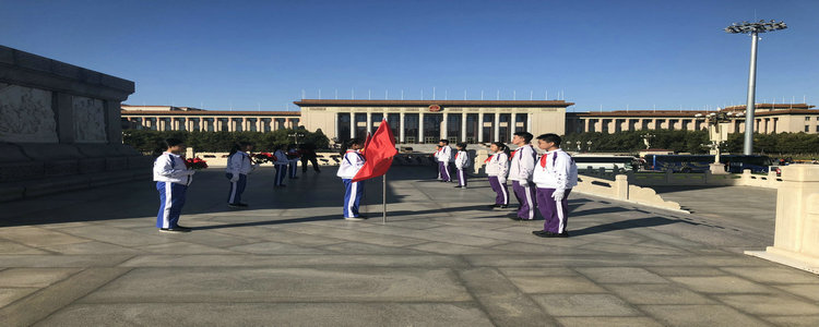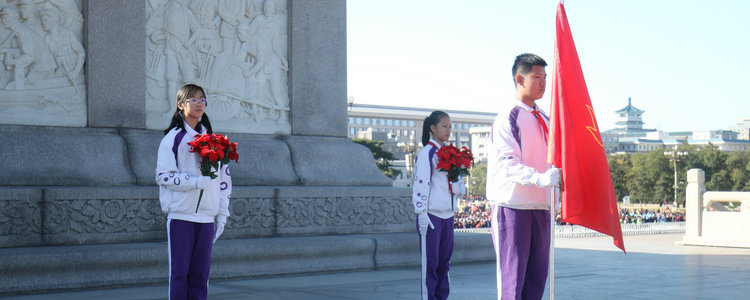 上午九点到十点,队员们踔厉风发,手持少先队大队旗和手捧花,立于人民英雄纪念碑下,为革命先辈站岗。天安门广场上,游客摩肩接踵,十二名少先队员以最好的精神面貌,最挺拔的身姿以及对革命先烈最崇高的敬意,向人们展示了我校以及首都少先队员的风采。