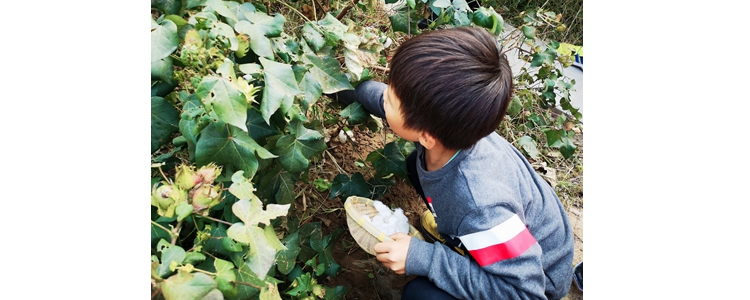 两年来,孩子们在劳动、生产、观察、鉴赏中体验中国传统“耕”“织”文化的魅力,在历经四季寒暑的学习、实践中,体验到了人文、自然与劳动有机结合的共生教育。校园中的半亩棉田,是孩子们探索自然科学的试验田,孩子们在观察、触摸和思考中掌握了棉花生长的奥秘;校园中的半亩棉田,是孩子们亲近大地、劳作耕耘的实践基地,孩子们在棉田里挥洒汗水,体会到劳动的快乐,形成热爱劳动、尊重劳动的正确价值观;校园中的半亩棉田,是老师们进行改革与创新的室外课堂,学科融合、活动式教学都让孩子们体验到自主探究与合作学习的乐趣。