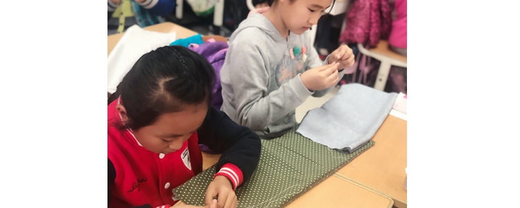 本次丰收节由六个区域组成:采摘区、脱籽区、纺线区、织布区、染布区、缝制区,每个年级各有任务分工。孩子们自己将经过春耕夏耘收获的棉花先进行脱籽处理,然后在纺线机上纺成棉线,这一根根棉线在织布机上来回穿梭,就神奇地变成了一块块布料。织好的布料送到染布区,运用古老又环保的扎染技术进行染色,纯色的白棉布就拥有了华美的色彩。前来参观的嘉宾们被祖国非物质文化遗产的魅力折服,对孩子们纯熟精湛的技艺感到惊叹!他们也都跃跃欲试,很快加入到动手操作的行列中来。