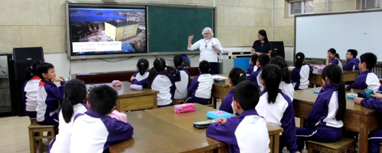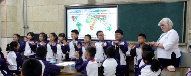 活动第二部分由芬兰老师和小学部老师分别做主题式教学课程展示。皮尔约·帕洛兰皮女士带领四年级3班的同学围绕“水”这个研究主题,从了解地球上的水资源分布概况到探究水资源的开发与利用,引领学生在小组活动中相互讨论,从而逐步形成自己的研究主题。