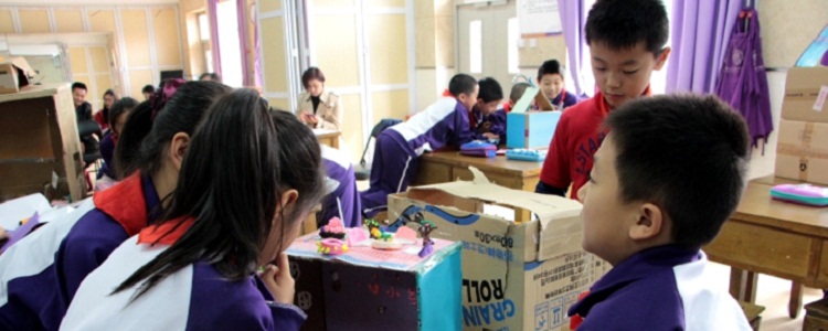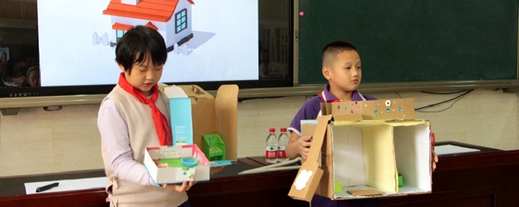 马博乐老师也带来了精心设计的“建造房屋”主题式实践活动。马老师在活动中让学生利用废旧纸箱设计房屋、建造各自小组的“别墅”,并在此基础上引入电路知识,使学生有机会把科学课中所学的电路知识立体化展现在自己的房屋中,让学生把知识真正“用”起来。