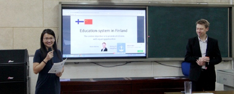 培训首日,马蒂▪赫利莫先生和皮尔约·帕洛兰皮女士分别做了主题报告,主要介绍芬兰的主题式教学理念和他们在教学实践中的做法。