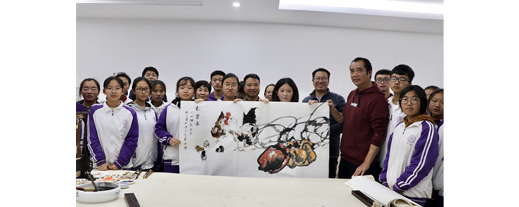 在延川县副县长吕勤芳与我校执行校长寇晓东、书记解礁、副校长张少峰的陪同下,艺术家们先参观了我校校园及学生的画作,随后和同学们在我校接待室进行了亲密的艺术交流。